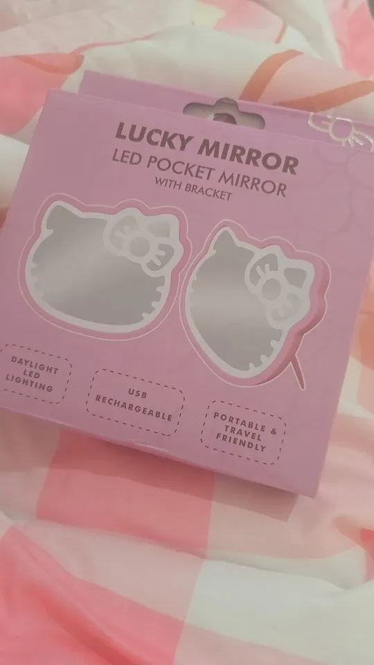 The hello kitty small light mirror is adorable and surprisingly good quality for the price. The lighting is bright enough for makeup touch-ups, and the design feels sturdy, not cheap. It’s compact, fits perfectly in my bag, and the pink details are so cute. Definitely worth it for hello kitty lovers! 🌸 ✨